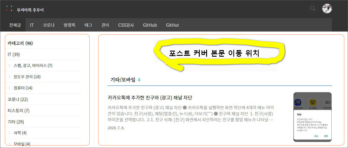 3. 이 블로그는 포스트 커버의 위치를 이동하지 않았네요.