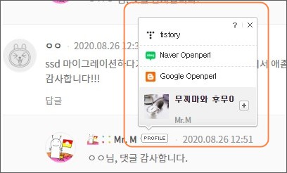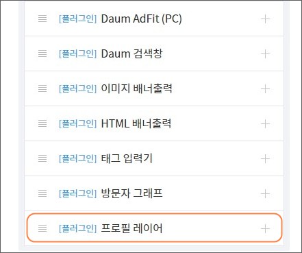 3. 티스토리에서 제공하는 "프로필 레이어" 플러그인입니다.