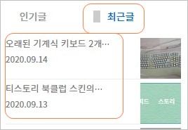 1. "최근글"은 사이드바의 "인기글/최근글" 항목의 옵션입니다.