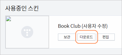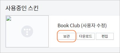 4. '사용중인 스킨'에도 다운로드 버튼이 있습니다. 현재 사용 중인 스킨을 실시간으로 압축하여 다운로드할 수 있는 방법입니다. 따로 '보관' 과정을 거쳐야 안전하게 "스킨 보관함"에 등록이 됩니다.