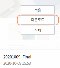 "적용, 다운로드, 삭제" 옵션 창이 뜹니다. 다운로드 버튼을 누르면 PC로 다운로드할 수 있습니다.