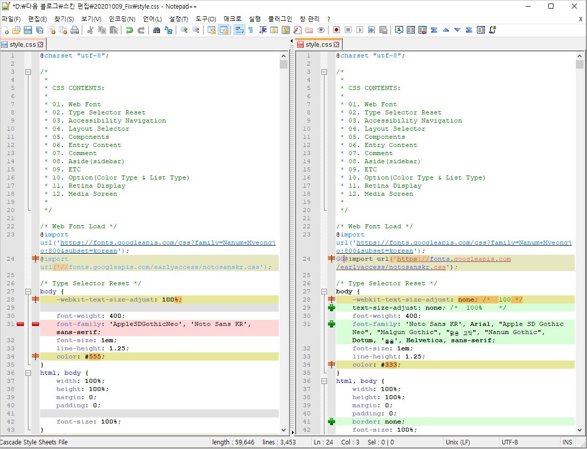 코드를 담고 있는 파일들을 비교할 때 NotePad++ 이용합니다.