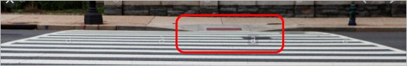 동일한 미국의 횡단보도 사진입니다. 봉은 설치하지 않았지만 경계선을 횡단보도의 폭과 일치하게 시공하지 않았습니다. 낙상 사고가 발생할 수 있는 지점입니다.