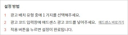 - '블로그 관리 홈' / '플러그인' / '구글 애드센스(모바일)' 의 본문 글에 링크가 있습니다.