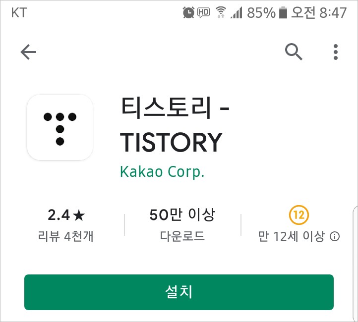 블로그에 PC 혹은 모바일 웹 브라우저를 사용하여 접근할 때에는 광고가 정상적으로 구현되지만, 구글 플레이스토어에서 설치하는 티스토리(TISTORY) 모바일 앱을 실행하여 블로그에 접속하면 본인이 등록한 광고가 보이지 않는 현상이 일부 블로거에게 발생할 수 있습니다.