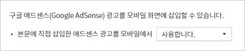 4. 본문에 직접 삽입한 애드센스 광고를 모바일에서 '사용합니다.' 선택합니다.