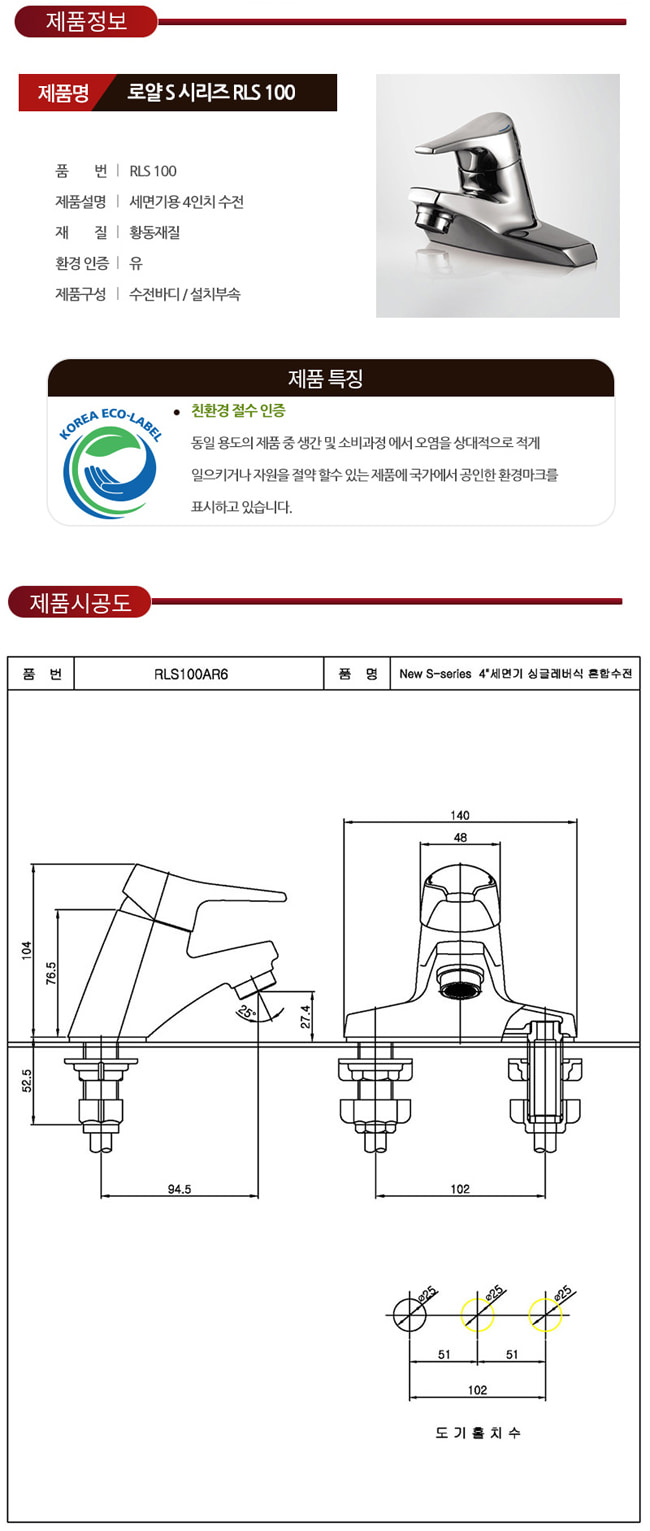 RLS100AR6 수전의 카트리지에는 3개의 고무 패킹을 사용하였습니다.