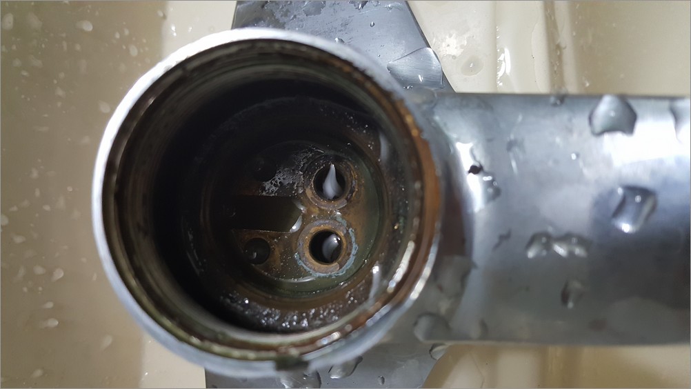 20년 가까이 사용하니까 내부 부품이 마모되거나 카트리지에 이상이 발생하여 수도꼭지를 잠가도 누수가 24시간 진행되는 상태입니다.