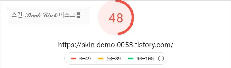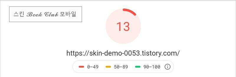 사용한 Book Club 스킨이 데스크톱 48, 모바일 13이니까 폰트와 자바스크립트 모듈의 제외가 많은 로딩 속도 차이를 발생시키고 있음을 알 수 있습니다.