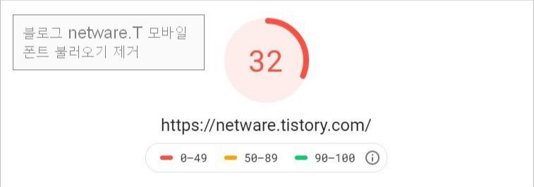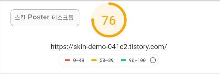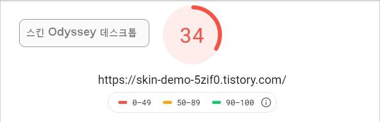Odyssey가 최근(2020년) 발표한 스킨인데 수치가 낮게 나왔습니다. 한 번 측정한 것이니까 객관성이 많이 떨어지겠지만 티스토리 블로그를 측정해 보면 등록된 광고, 폰트와 스크립트 모듈을 불러오는 코드와 사용한 스크립트가 문제의 원인일 경우가 많습니다.