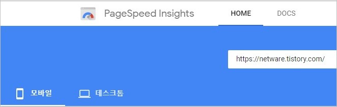 Insights 페이지에 접속하면 간단하게 측정을 원하는 인터넷 도메인이나 주소를 입력하고 실행시키면 됩니다. 모바일과 데스크톱 2가지로 분류하여 분석 정보를 제공합니다. 아주 간단한 측정 방법입니다.