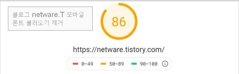 Odyssey가 최근(2020년) 발표한 스킨인데 수치가 낮게 나왔습니다. 한 번 측정한 것이니까 객관성이 많이 떨어지겠지만 티스토리 블로그를 측정해 보면 등록된 광고, 폰트와 스크립트 모듈을 불러오는 코드와 사용한 스크립트가 문제의 원인일 경우가 많습니다.