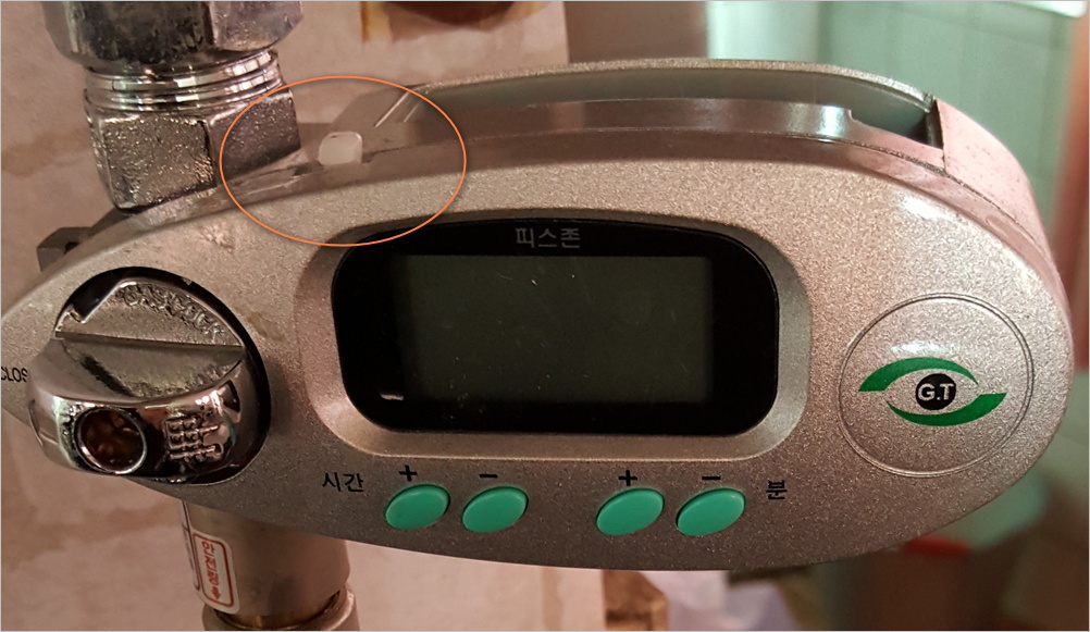 이것도 배관 내부의 습기 발생으로 인한 것이 아닌가 추측합니다. 밸브를 열어 놓은 상태에서 상부의 흰색 플라스틱 버튼을 누르면 기기가 초기화되면서 문제가 해결되기도 합니다. 배터리 탈착하고 이 버튼을 누르는 방법을 시도해 보세요.