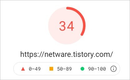 아직도 미흡한 저 수치는 스킨 자체의 문제이기도 하지만, 티스토리 치환자에서 기본적으로 사용하는 폰트, 스크립트, jQeury 때문입니다.