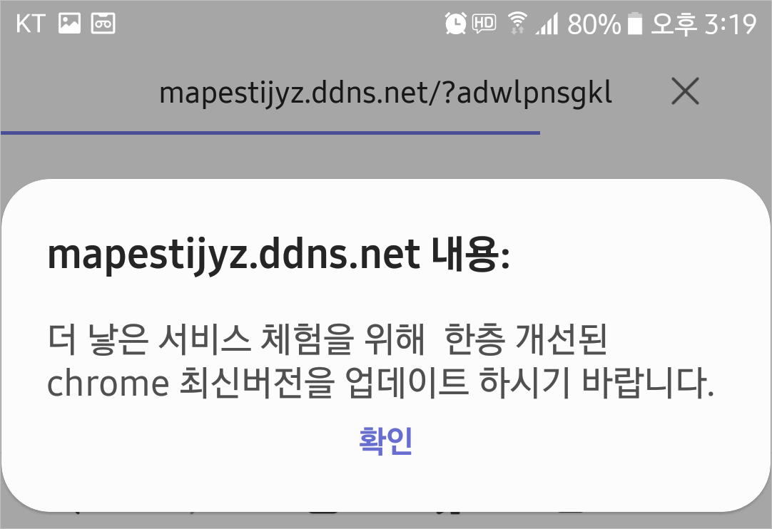 문자에 기록된 링크를 누르면 "mapestijyz.ddns.net ......" 다른 서버로 연결됩니다.