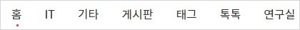 밑줄 친 부분은 현재("current") 접속한 카테고리나 초기 페이지("홈")를 강조하는 기본 디자인 요소입니다.
