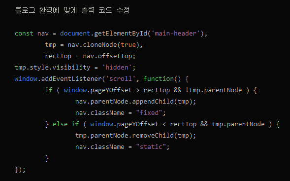 3. 수정: Position Sticky를 구현하는 Fixed JS 코드 3차 수정