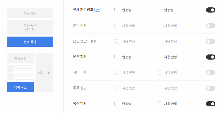 2. 본문 하단 및 목록하단 광고