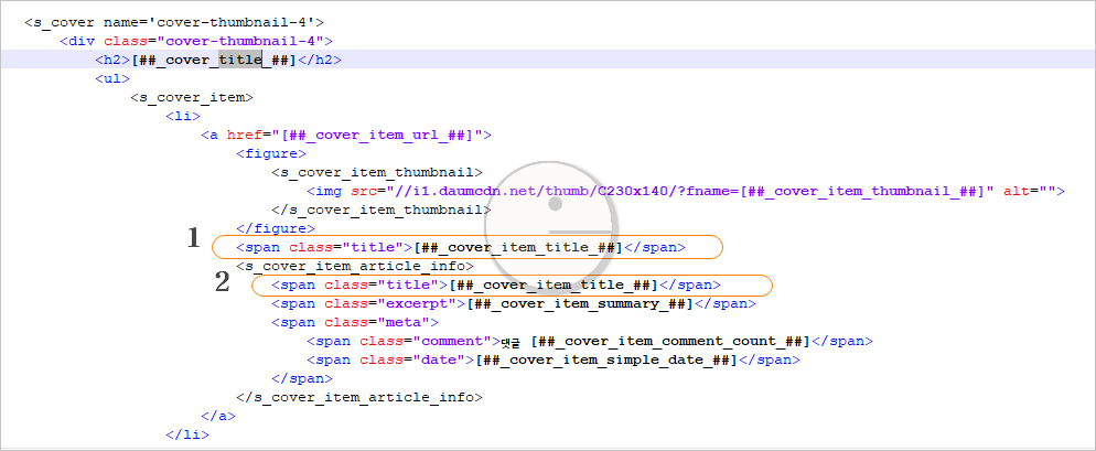 1번을 삭제하면 이 글 상단에 등록한 캡처 이미지처럼 그림과 글에 약간의 여백이 설정되어 안정감 있는 모습을 보입니다. 그리고 <s_cover_item_article_info></s_cover_item_article_info> 티스토리 치환자 태그 사이에 위치하는 것이 정상적인 코드입니다.