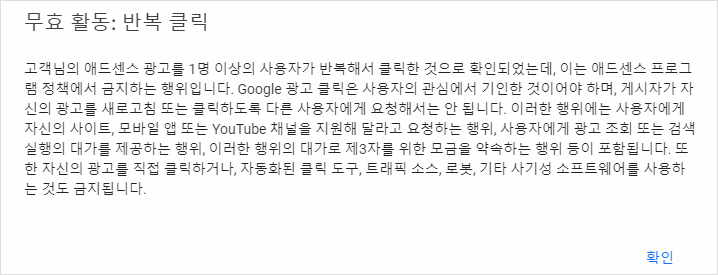 구글 애드센스의 부정 클릭을 정의하는 페이지입니다.