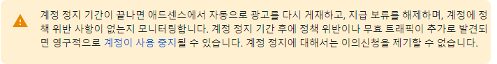 ※ 2021년 12월 5일(일) 오전 11시쯤 되어서 경고문 사라지고 광고 게재 가능한 상태로 변경되었습니다.
