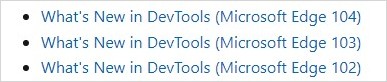 개발자 도구(DevTools)의 릴리즈 번호는 따로 없고 Edge 번호에 대응하는 것으로 추측합니다. 현재 104입니다.