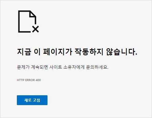 3자리 오류 코드 400은 클라이언트인 접속자의 기기(PC)가 서버에 전달한 요청 사항이 구문에 오류가 있거나, 유효하지 않은 메시지 프레임이거나, 거짓된 요청 경로일 경우를 뜻합니다.