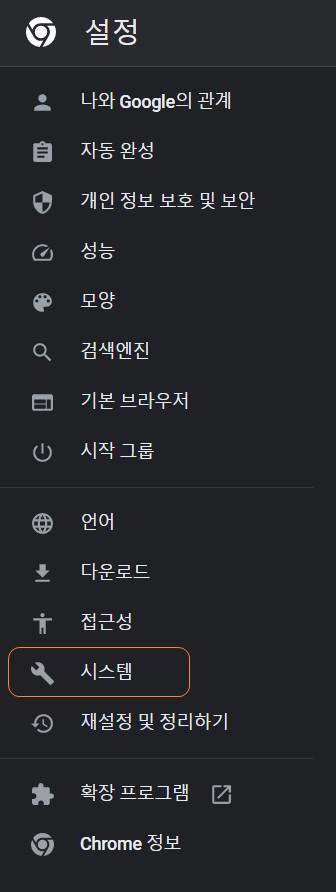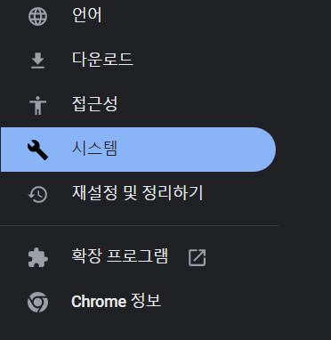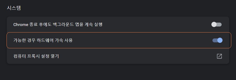 3. 클릭하고 나타난 <시스템> 페이지의 오른쪽을 보면 "가능한 경우 하드웨어 가속 사용" 선택 메뉴가 보입니다.