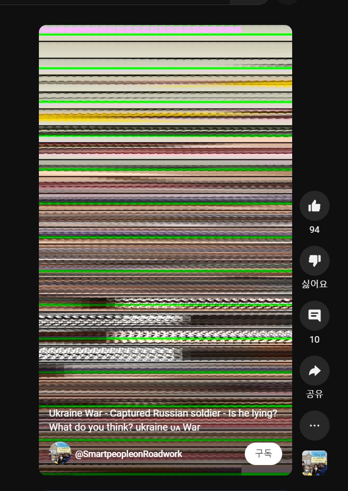 재생 오류는 위 이미지처럼 가로줄이 생깁니다. 인터넷 검색해 보니까 주로 초록과 파랑, 그 밖에도 여러 가지 다양한 색의 가로줄이 교차로 동영상 프레임을 채웁니다.