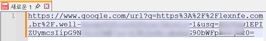 해당 링크 버튼에 마우스 커서를 올리고 마우스 오른쪽 버튼을 클릭하여 나타나는 팝업 창에서 "링크 복사" 기능을 사용하였습니다. 복사한 내용을 텍스트 편집기에 붙여 넣기 하니까 위와 같은 링크 주소가 나타납니다. 마이크로소프트 핫메일 계정으로 인도하는 주소가 아니라 구글 도메인으로 시작하는 낯선 인터넷 주소임을 확인할 수 있습니다.