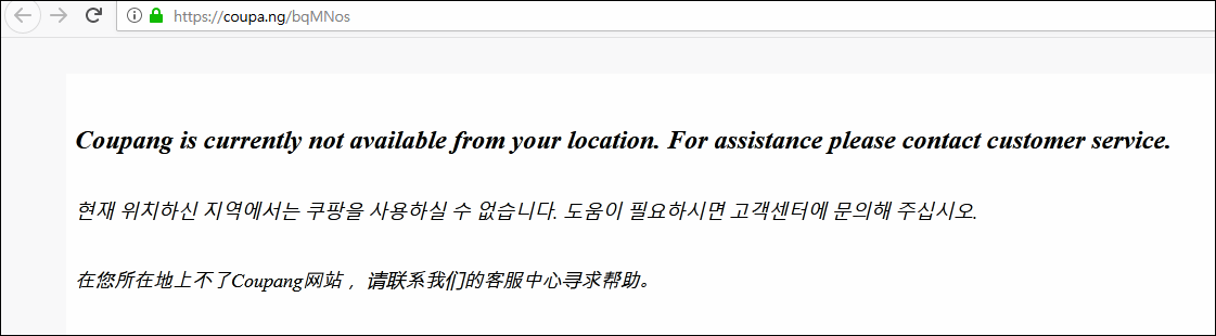 - 사용자가 관리하는 블로그에 올려진 쿠팡 광고의 소스가 스크립트 없이 단순 HTML 언어만 사용했는데도, 브리지 서버를 우회하는 동안 사용자 기기의 위치를 외국 IP로 인식하였기 때문에 쿠팡 광고가 정상 출력되지 않고 있습니다.