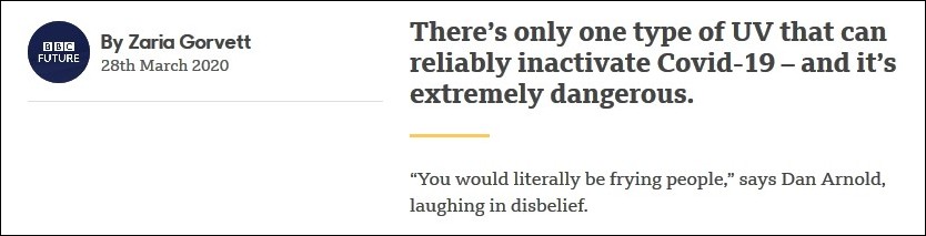 [출처] BBC / FUTURE, "Can you kill coronavirus with UV light?"