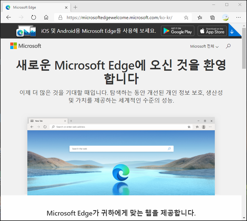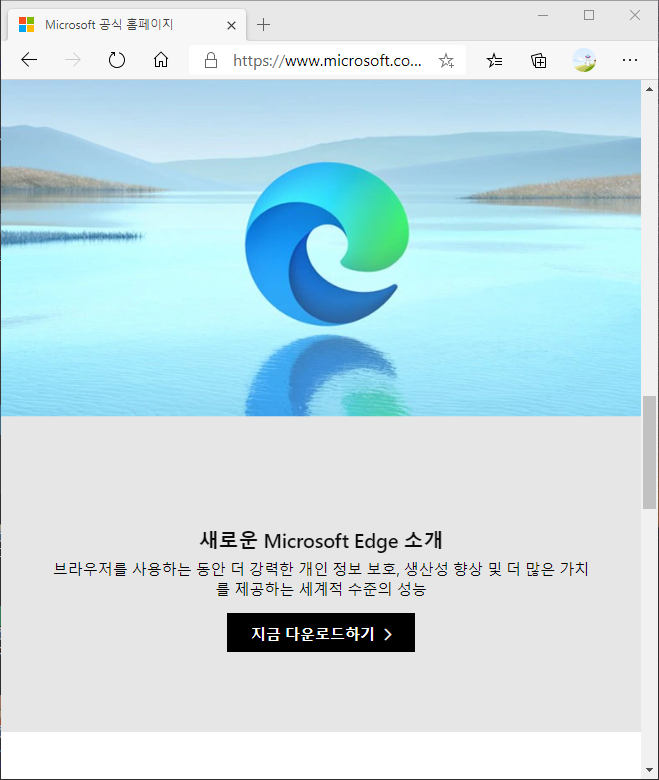 언제 출시했는지 새로운 Microsoft Edge가 배포되고 있습니다. 알림 창이 몇 번 떴었는데, 그냥 마이크로소프트에 접속하여 다운로드 설치하였습니다.
