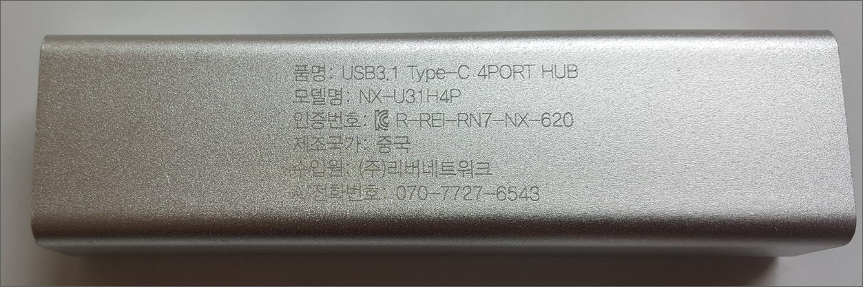 USB-C 단자 1개만 사용할 수 있는 노트북에 연결했던 무전원 4포트 USB 허브입니다.