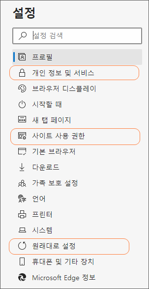 웹 브라우저 오른쪽 상단 3점 > 설정 > 하단 고급 > 개인정보 및 보안 > 쿠키 및 기타 사이트 데이터