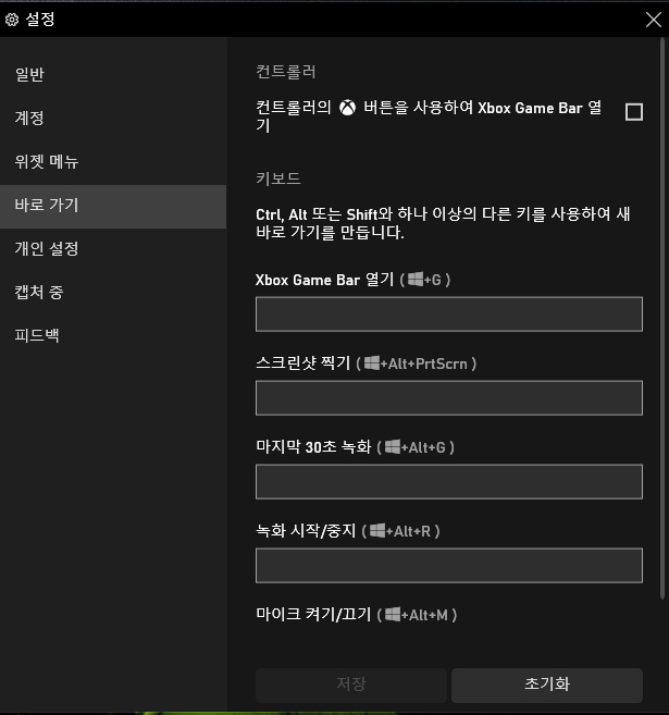 스크린샷 단축키 뿐만 아니라 Xbox 관련된 단축키의 변경이 가능합니다.